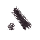 14G stainless steel spoke with a powder coated finish. Includes black brass nipples. Sold 50 per bag.